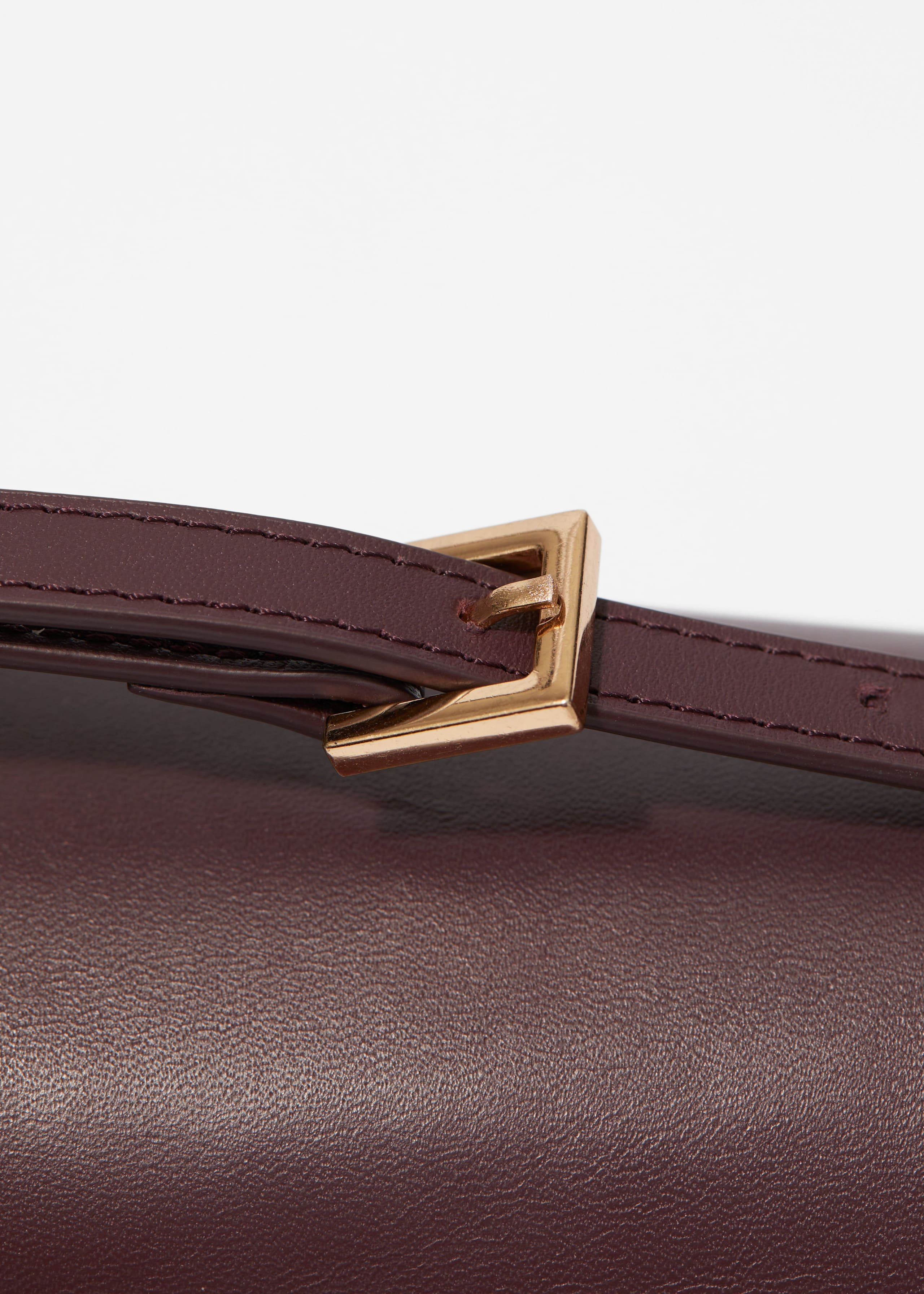 Liten rektangulär axelremsväska med en smal, justerbar axelrem och innerficka med dragkedja. Magnetstängning.