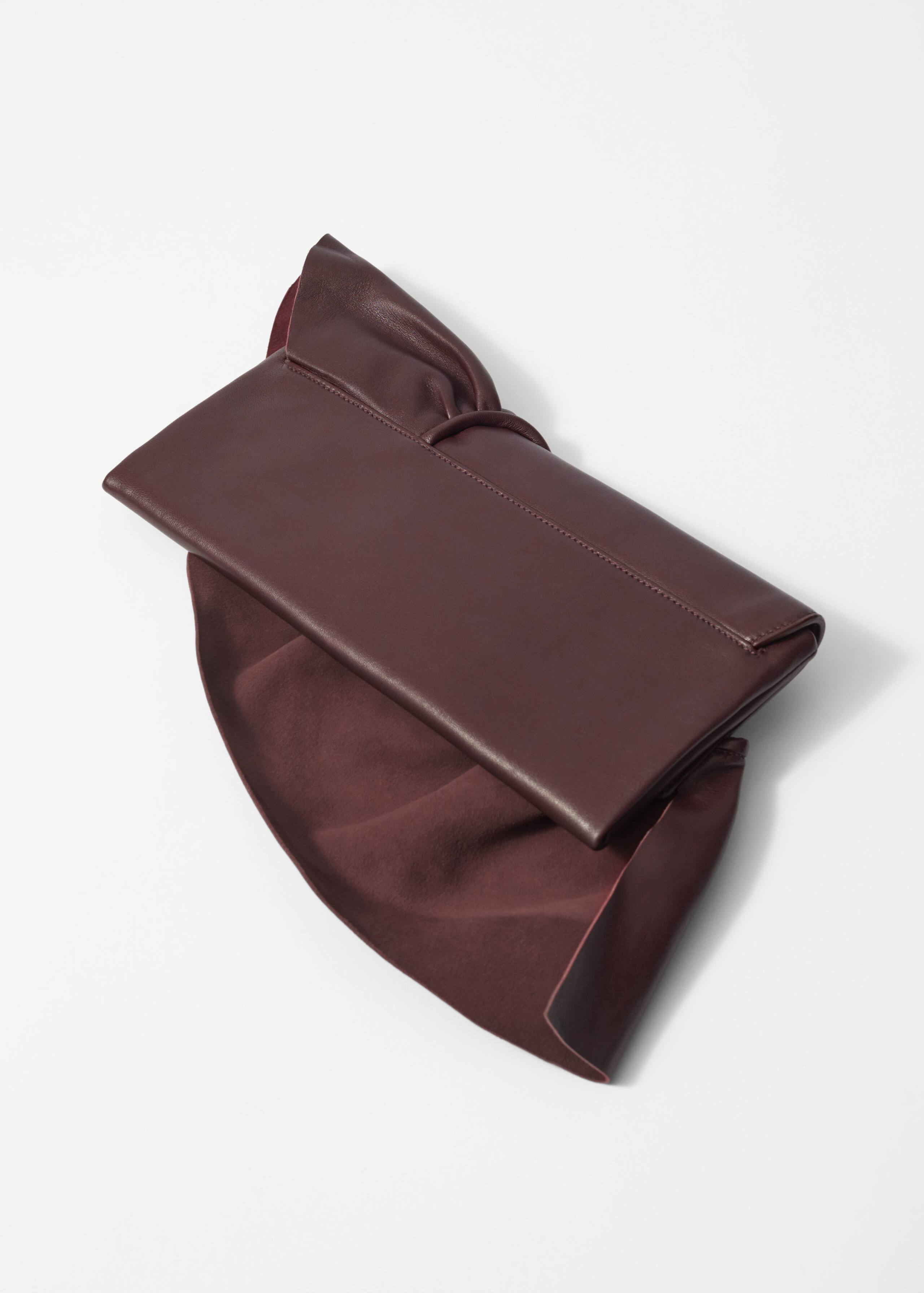 Clutch med en elegant kuvertform och en oversized volangdetalj. Den är tillverkad av mjukt läder och har gott om plats för det mest nödvändiga. En innerficka.