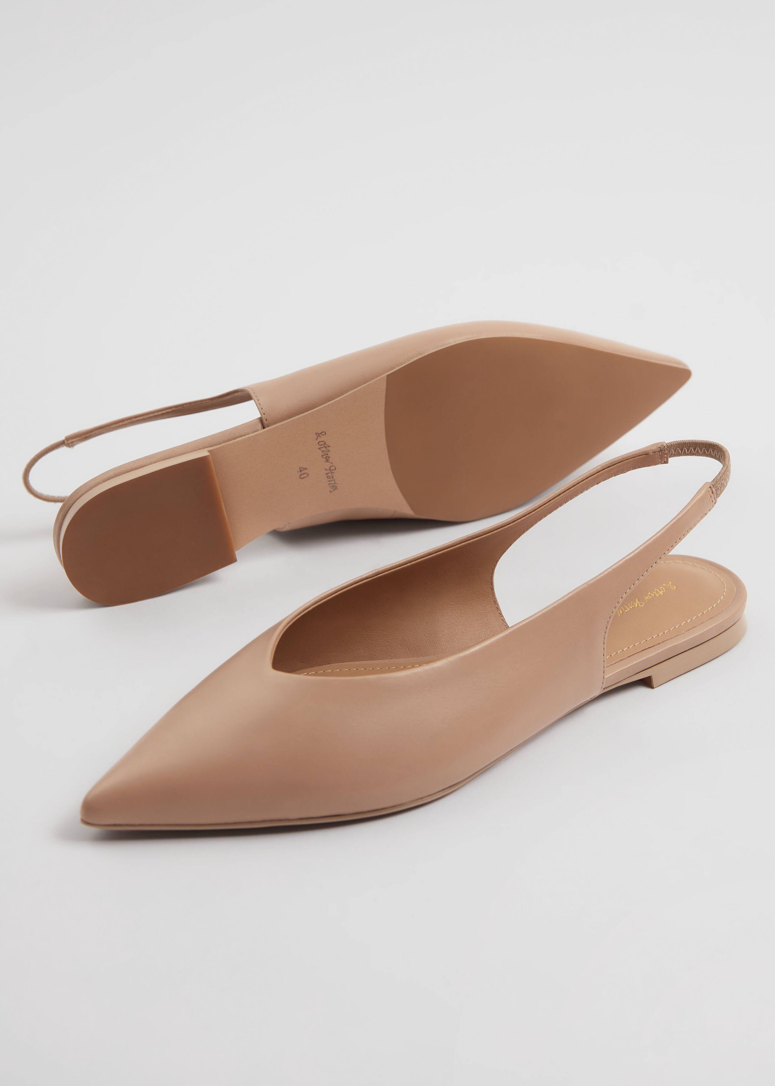 Spetsiga slingbacks i läder med en mjuk elastisk slingbackrem och platt sula.