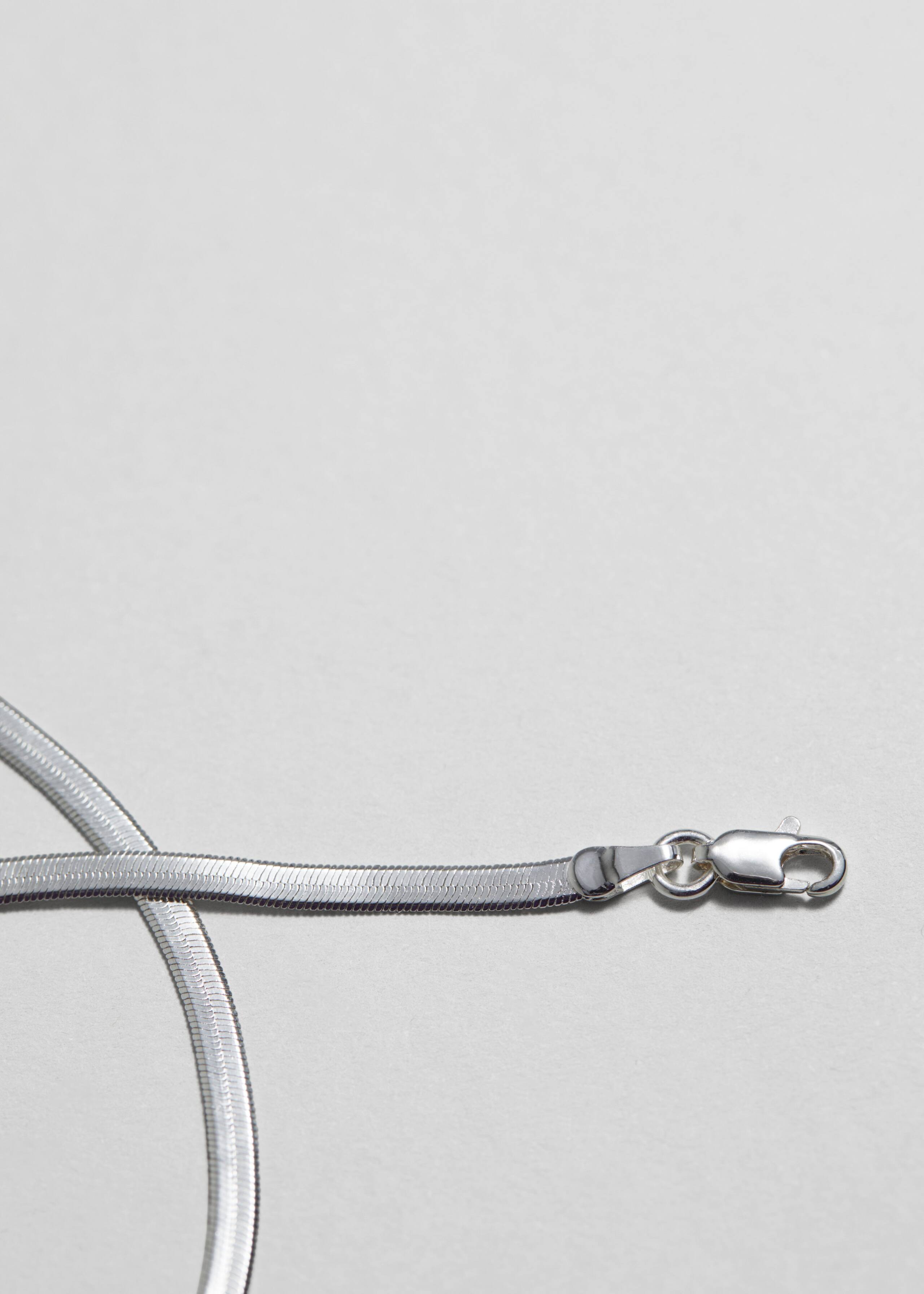 Enkelt halsband med en rund kedja av polerad guldfärgad mässing. Klolås.