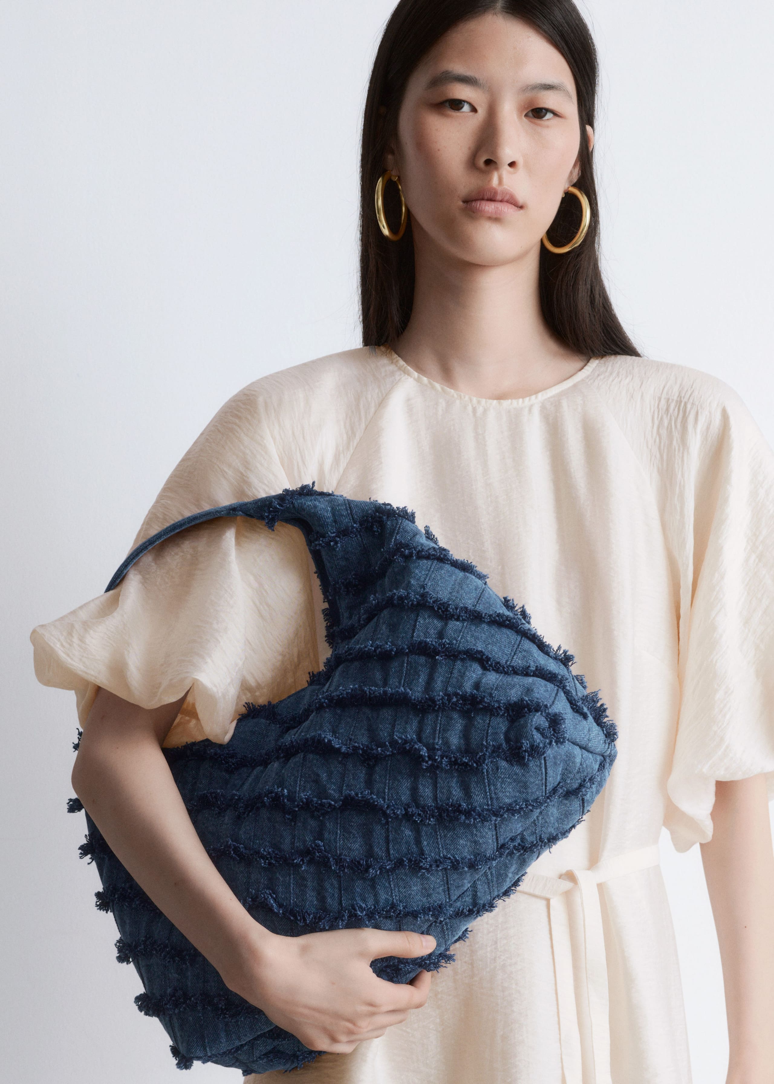 T-shirt med rund hals, något avsmalnad midja, dekorativa sömmar och korta, vida ärmar.