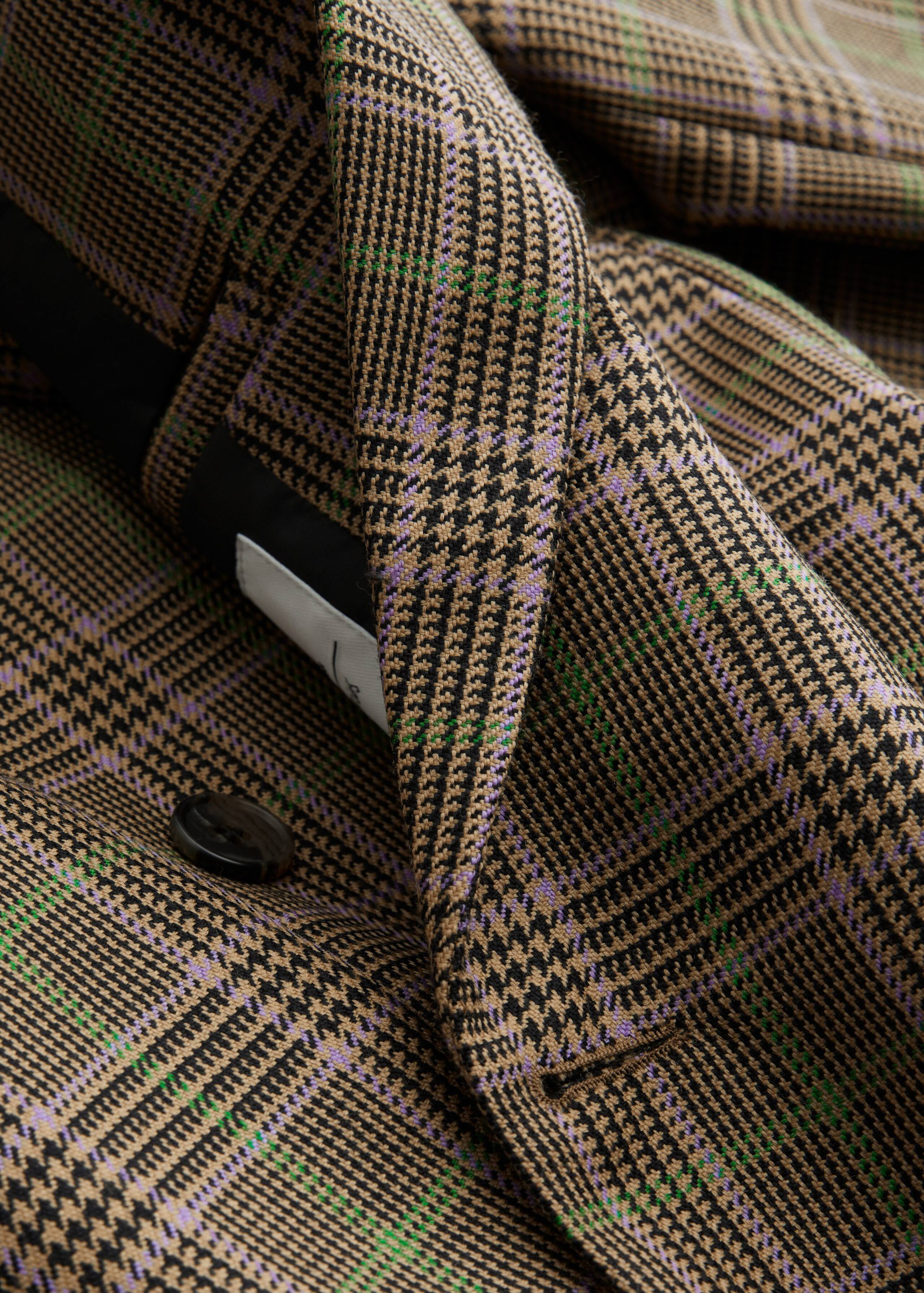 Skräddad dubbelknäppt kavaj med axelvaddar.
